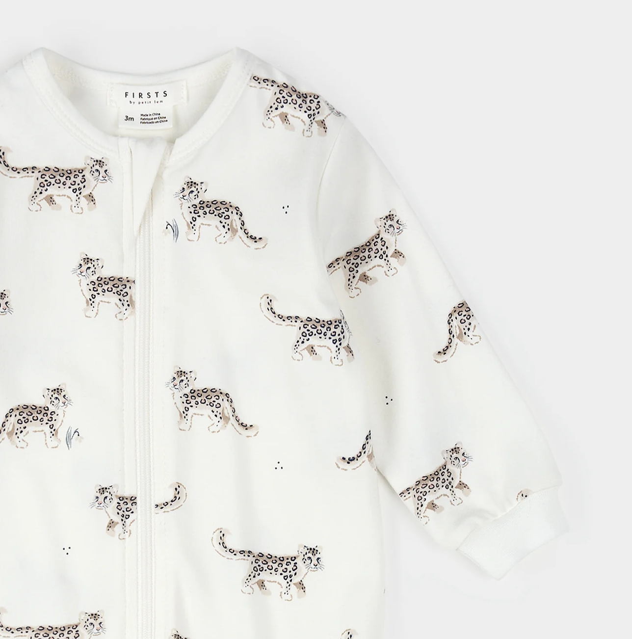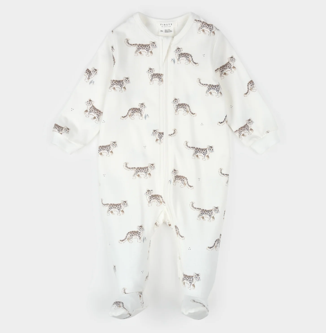 Snuggle up with your little one with this cozy Snow Leopard print footed sleeper. Made from soft, organically grown cotton jersey, it’s delicate on her skin and keeps her snug on cooler nights. The two-way zip is designed to make diaper changing or dressing a breeze, the ribbed cuffs keep her hands free for exploring.