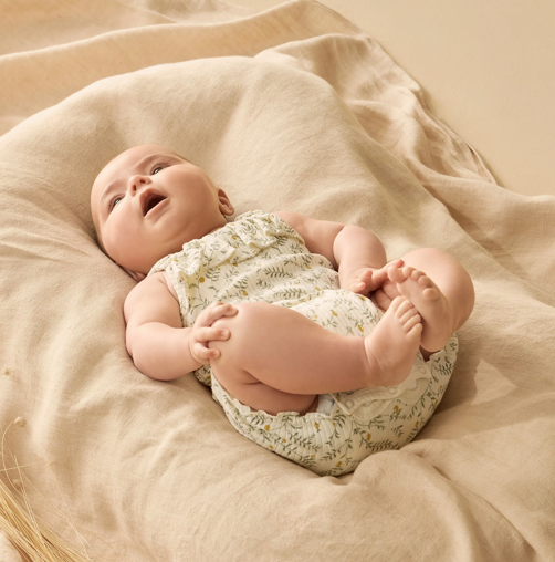 Made from GOTS-certified organic cotton in a beautiful drop needle fabric, this baby playsuit features our sweet all-over summer bloom print. Designed for comfort and style, it has a roomy fit perfect for growing little ones, stretchy shoulder straps for easy changes, and soft shirred leg openings to keep bub comfy all day long. A delicate front ruffle adds a touch of charm to this summer must-have. WFS2539-01