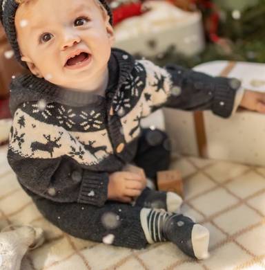 Souris Mini Wool Blend Jacquard Hooded Cardigan and Pant Grey