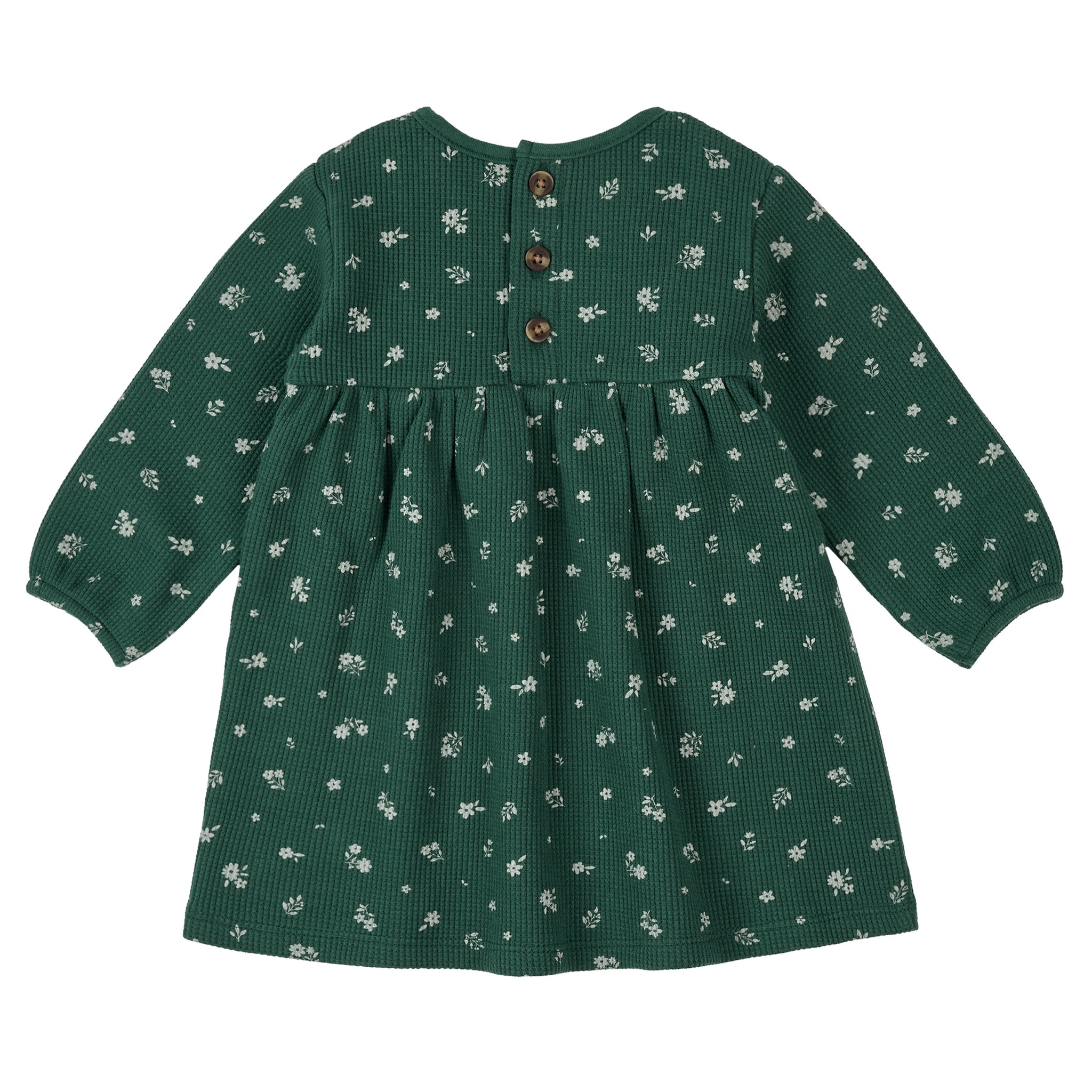 Soft and stylish, this cozy dress set features delicate ruffle detailing and a pretty Crème Flower print on a festive green. A button placket at the back makes the dress easier to pull on and off excited little ones and there’s coordinating tights for layering underneath to keep her warm.