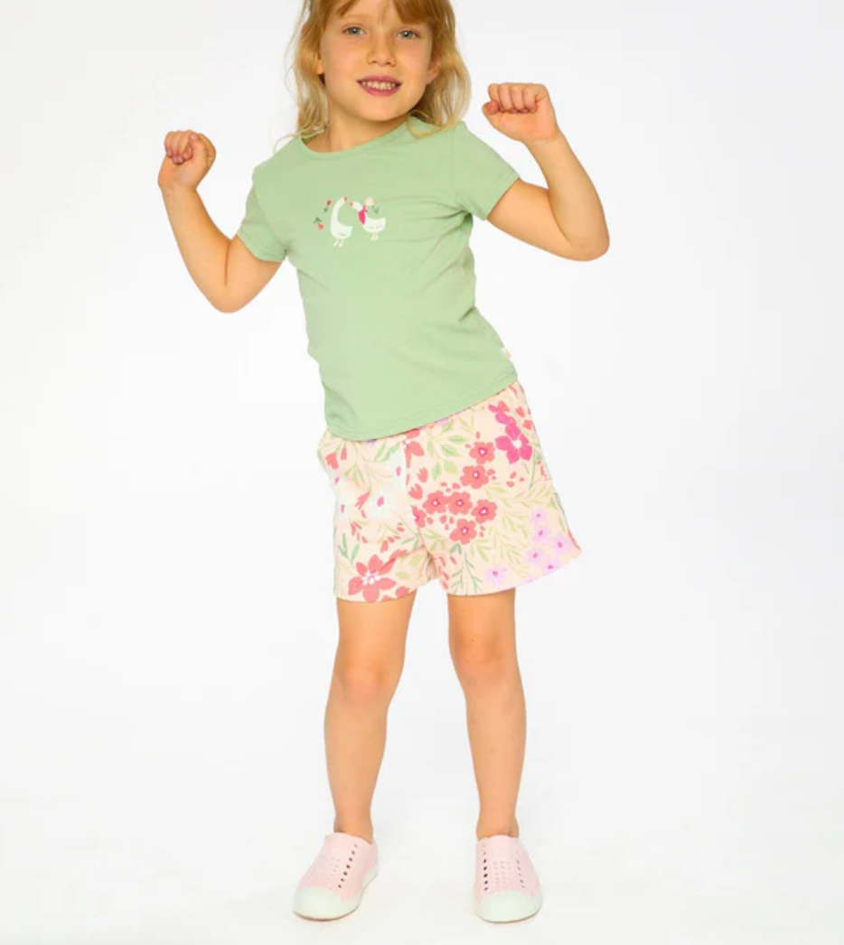Slip into pure comfort with these charming French terry shorts! Featuring a delightful printed meadow flowers design on soft pink, they're perfect for active kids who love to play. The elastic waistband and straight cut provide easy movement, while handy side slant pockets keep essentials close. Simple pull-on styling means getting dressed is a breeze—no fuss, just fun! H30F26