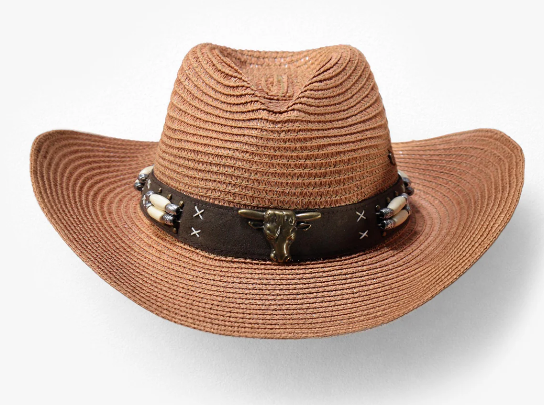 Straw fedora hat with a wide decorative band. The perfect accessory for sun protection and a stylish western look! 1053016C
