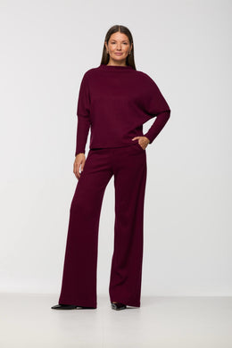Beddome Wide Leg Pull On Pant Burgundy