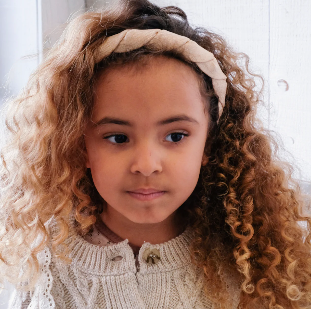 Our gorgeous sparkling linen headband features a twisted plait detail and is scattered with delicate shimmer! Made from the gorgeous linen fabric, with grosgrain ribbon wrapped ends to ensure a comfortable fit for little heads.