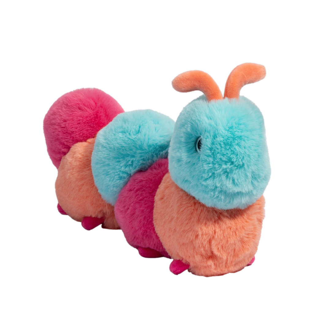 This adorable soft plush toy captures the charm of one of nature’s most fascinating critters. With her pillowy, segmented body in pink, orange, and blue, her big friendly eyes, and cute little antennae, Munchie is ready to be your new best friend! Her cheerful personality makes her the perfect companion for children and adults alike, and her curious spirit makes her ready for any adventure.