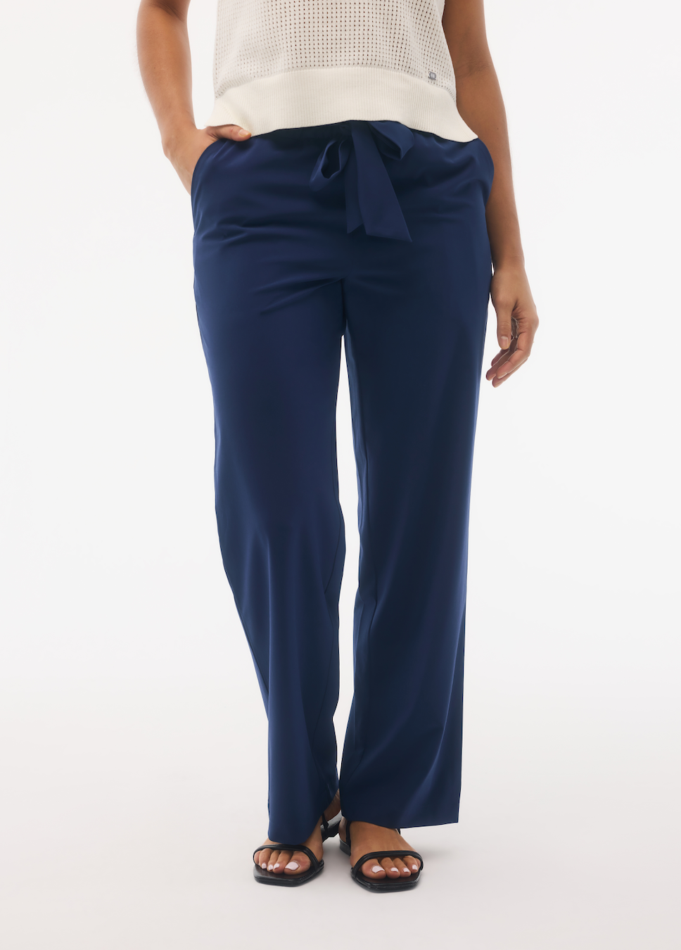 These straight-leg pants with a self-fabric front belt deliver a dressy, stylish look while staying soft, stretchy, and super light - perfect for warm summer evenings. Two front pockets and discreet zip secure pocket on the right side provide practicality and added security when needed.