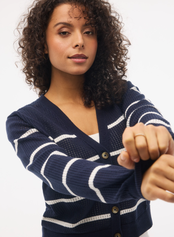 Your new favorite summer cardigan. The nautically inspired striped BCI cotton breezy knit offers effortless versatility all day long. Finished with ribbed detailing at the neckline, button placket, and cuffs for a clean, high-quality look. Breezy knit fabric:• 80% BCI cotton• 20% acrylic
