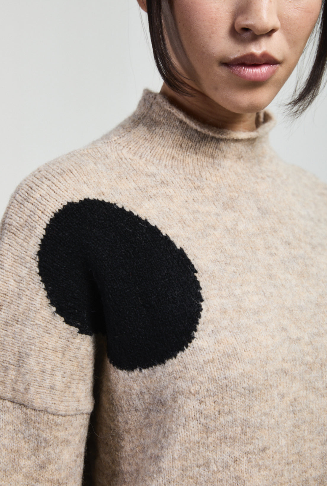 Be cozy and chic in the Neirami Dot Sweater in a wool/alpaca blend. With a soft turtle neck and fun big dot detail, this knit sweater is perfect for those looking for a quirky twist on their winter wardrobe. Stay warm and stylish in this boxy, beige sweater. K112-TP-BE