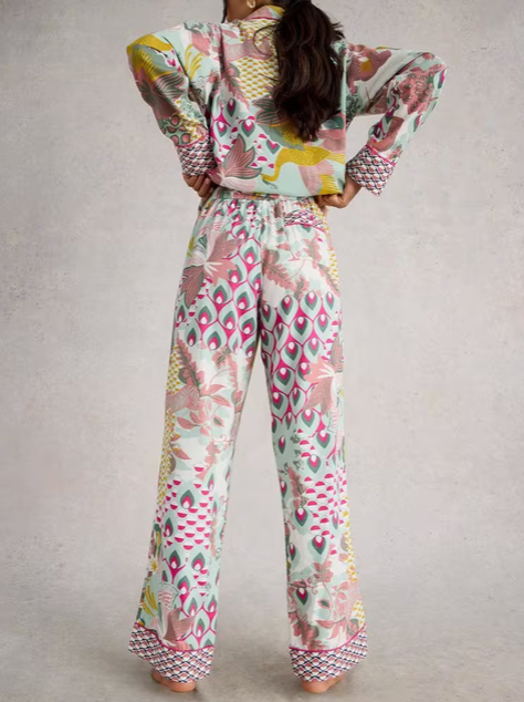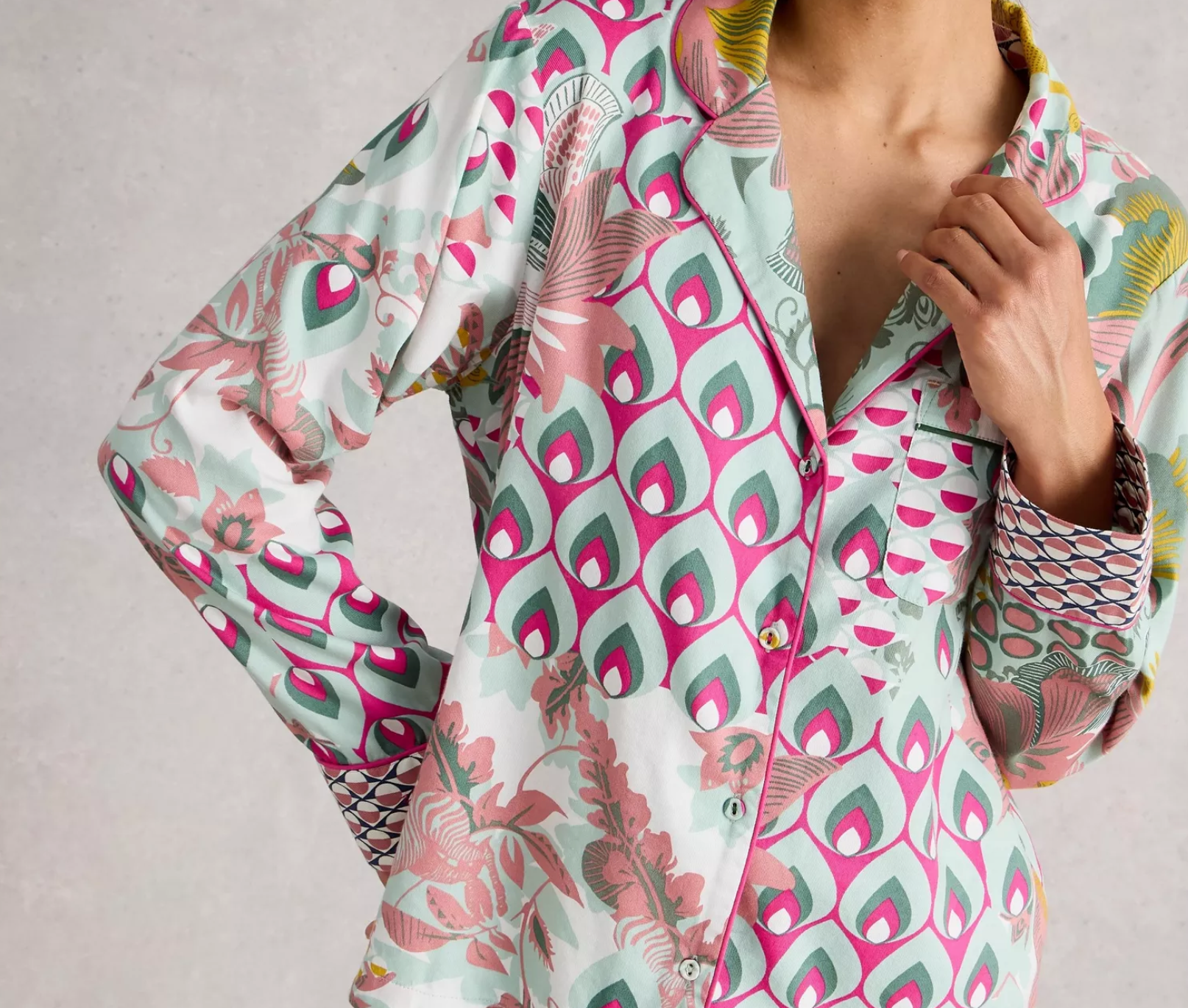 Printed pyjamas with contrast cuffs, signature embroidery and a super soft finish. They’ve got pockets too. For hiding midnight snacks and so forth.